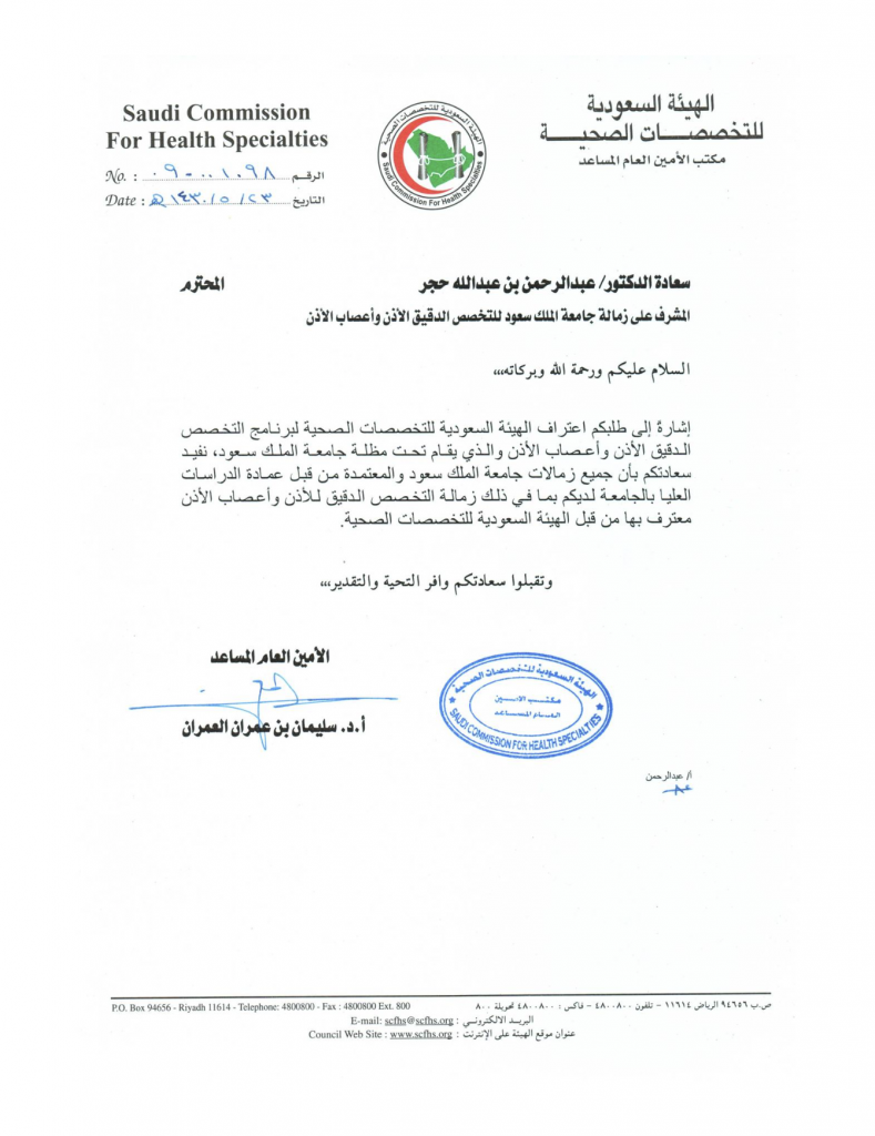 أحد اهم انجازات حياتي هي تأسيس برنامج تدريب معتمد للأخصائيين في تخصص جراحة الأذن وأعصاب الأذن وقاع الجمجمة، هذا أول برنامج تدريب معتمد في الشرق الأوسط والذي تبعه العديد من البرامج بعد ان اثبتوا خريجينا جدارتهم والان انا اتعلم من الخريجين السابقين واطلب مساعدتهم في الحالات الصعبة