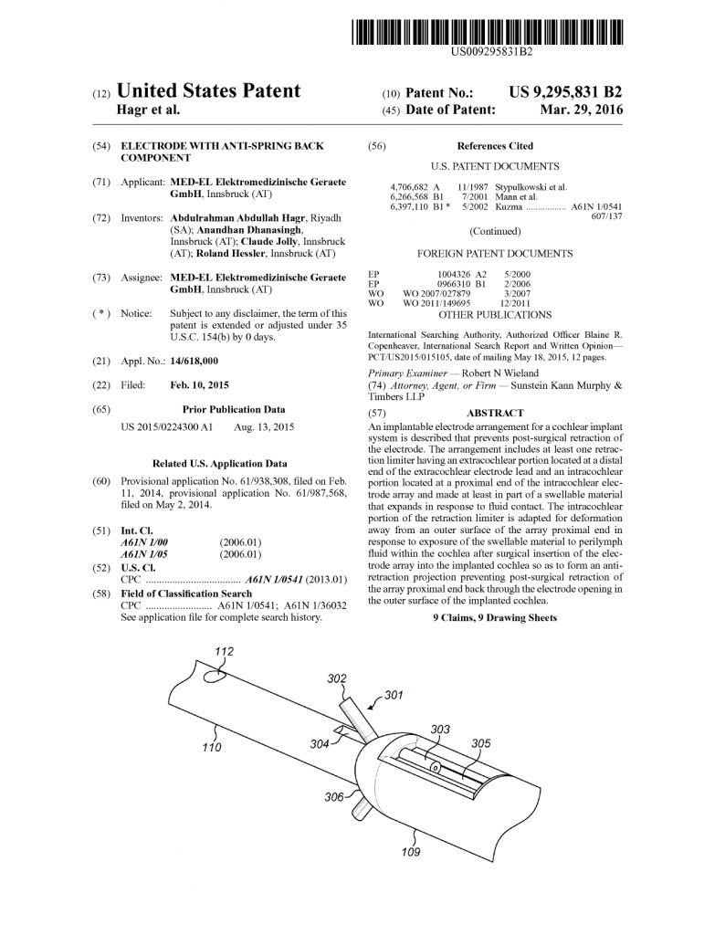 Embodiments of the present invention is directed to an implantable electrode arrangement for a cochlear implant system that prevents post-surgical retraction.