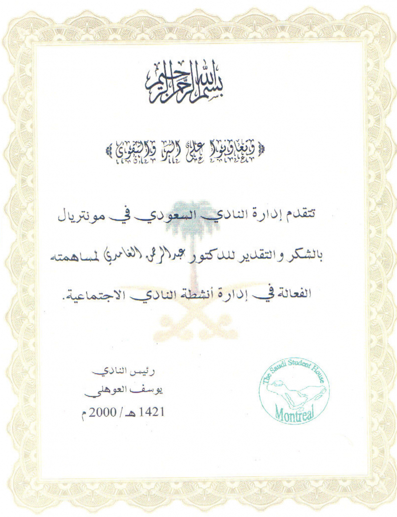 كلي فخر وأعتزاز بالثقة الغالية والثمينة التي كرمني بها أعضاء الجمعية بعضوية مجلس الادارة لعضوية مجلس الإدارة لأربع دورات متتلالية والشكر موصول لجميع أعضاء المجلس الذين ينتخبوني قي كل دورة رئيس للمجلس